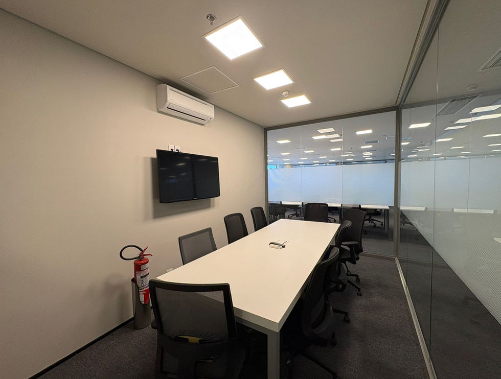 Sala de 399,55m² está mobiliada, com 56 posições de trabalho, 3 salas de reuniões, espaço para copa, e auditório. Conta também com iluminação e ar condcionado.