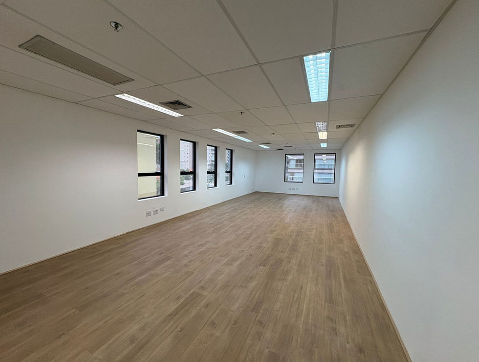 A sala 42, com 60m², está com conceito open space, piso vinílico, forro, iluminação, dois banheiros e ar condicionado.
